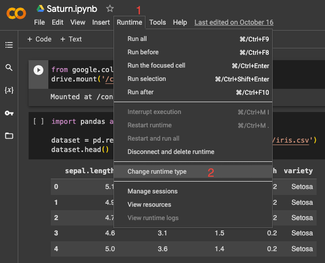 Runtime → Change runtime type